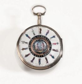 OROLOGIO DA TASCA CON DOPPIO QUADRANTE, DATARIO E GIORNO DEL MESE, FRERES BOCH E COMP.IE, 1780 CIRCA, IN ARGENTO