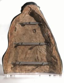 deep-etched high relief with painted and gilded stucco work, 71x56x20 cm mounted on acrylic stand