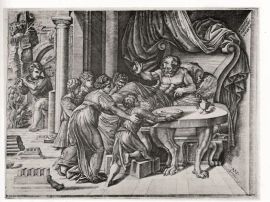 Il piatto in esame per lo stile già maturo è, a nostro parere, opera da ascrivere all’attività del pittore nel Ducato di Urbino attorno agli anni 1528-1530.