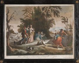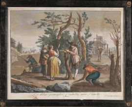Rara serie completa di 12 tavole acquerellate incise da Giovanni Battista Cecchi (Firenze 1748 – post 1815) da disegni di Giuseppe Zocchi, edita a Firenze da Giacomo Moro e Giuseppe Bardi nella secconda metà del Settecento. mm 290x370 cad.