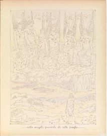 In folio (347 x 272 mm). xvi 142 [6] pp. Illustrato da 20 tavole litografiche firmate da De Chirico, di cui 10 colorate a mano con pastelli. Frontespizio in rosso e nero. Capilettera in rosso. Fogli sciolti entro chemise con illustrazione di De Chirico al piatto anteriore. Assenti la suite di 10 tavole, così come anche la chemise e la custodia editoriali. Pagine uniformemente ingiallite, ma per il resto copia ottima.