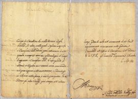 (Savoia) MARIA GIOVANNA BATTISTA DI SAVOIA (1644-1724). Patente di Capitano a Charles Albert Aldobrandin.