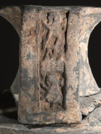 Decorazione: sulle anse decorazione impressa con felini rampanti, separati