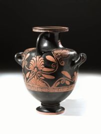 Materia e tecnica: argilla figulina rosata, vernice nera lucente,
