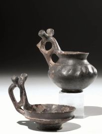 Materia e tecnica: impasto depurato bruno, lucidati a stecca, modellati a tornio lento, decorati a impressione