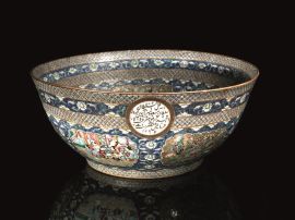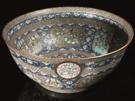 Three large Canton famille rose bowls six large dishes made for Mas’ud Mirza Zill-I Sultan of Persia, 1879. Qing dynasty (1644-1911), reign of the Guangzu period (1875-1907)