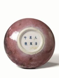A Chinese peach bloom glaze brush-washer, 19th c., Kangxi mark