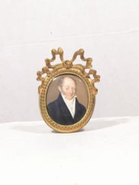Tre miniature, sec. XIX, su avorio due raffiguranti gentildonne con cappello, una raffigurante gentiluomo, entro cornici in metallo dorato, cm 11x7,5; cm 15x10; cm 13,5x11,5 (3)