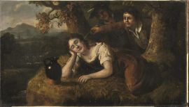 coppia di dipinti ad olio su carta applicata su tela, cm 33x58,5 ciascuno, senza cornici