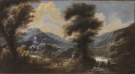 coppia di dipinti ad olio su tela, cm 47x86,5 ciascuno