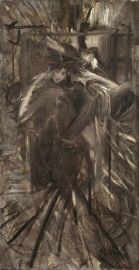He was a great producer of “elegant figures”, and he managed to express in his paintings, fruit of sudden inspiration, the exaltation of the essence of Parisian life; Bernard Berenson said about him: “... Boldini interpreted splendidly the extreme feminine elegance of an age when it was greatly overdressed by the contrivances of tailors and milliners, and figuratively connected to ambiguous poses, between sitting rooms and theatres. But these portraits have a powerful allure: they reveal the painter’s impetuous, confident talent, along with a certain satirical zest...” (see B. Berenson, Giorni d'autunno in Romagna, in Pellegrinaggi d'arte, preface by E. Cecchi, Milano 1958).