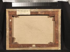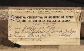 on the reverse: label " Mostra celebrativa di Giuseppe De Nittis e dei pittori della Scuola di Resina, 8 giugno – 11 agosto 1963 / Società Promotrice di BB.AA. Salvator Rosa - Villa Comunale - Padiglione Pompeiano - Napoli"
