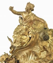 The elaborate rocaille ornament of these clocks, with uninterrupted curves enriched by foliate branches, garlands, leaves, winged putti and graceful divinities, are creations of designers of the caliber of Gilles Marie Oppenordt, Juste Aurèle Meissonier or Nicolas Pineau.