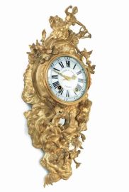 Negli orologi da parete (cartels d’applique) la preziosa esecuzione scultorea prevale spesso sulla raffinatezza del movimento: l’elemento predominante è infatti la decorazione della cassa, che nell’epoca di Luigi XV evidenzia una spiccata asimmetria.