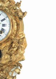 In cartel clocks (cartels d’applique) the preciousness of the sculptural execution often prevails over the refinement of the movement: the dominant element is in fact the decoration of the case, characterized by an marked asymmetry during the Louis XV period.
