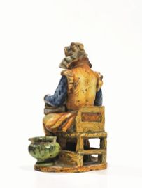 Earthenware, painted in yellow, orange-yellow, green, blue, brownish manganese, and tin white.