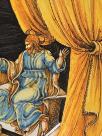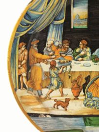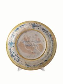 Earthenware, painted in yellow, orange, blue, green, white, and manganese