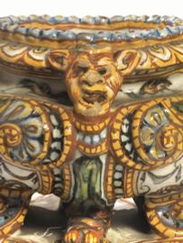 Earthenware, painted in antimony yellow, orange-yellow, green, blue, and brownish manganese.