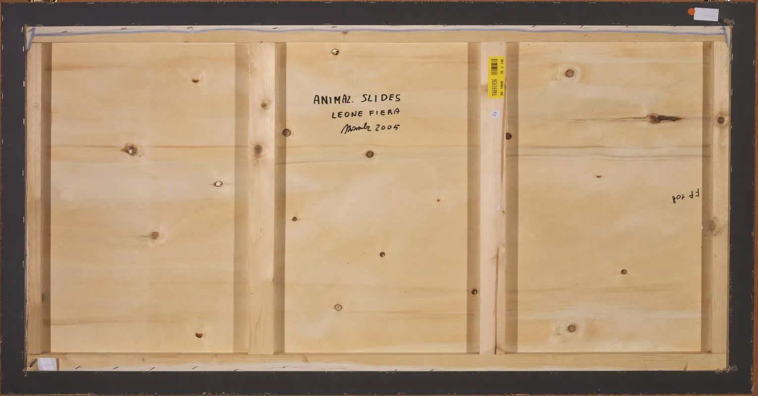 olio e smalto su tela applicata su tavola, cm 70x140
