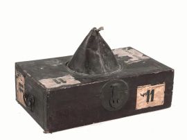 Armatura da cerimonia Cina sec. XIX, in seta e metallo, finemente ricamata e borchiata, decorata da medaglioni con draghi, il fronte e la schiena con specchi circolari, il collo e le spalle ricoperti da decorazioni in metallo traforato a motivo di draghi, il copricapo in metallo a punta completo di pennacchio, usure