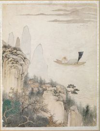Coppia di disegni, Cina fine dinastia Qing, acquerelli su carta, raffiguranti paesaggi animati cm 35x26,5 (2)