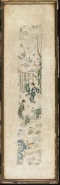 Due pannelli Cina fine dinastia Qing , in tessuto ricamato, cm 63,5x30; cm 54x15,5 (2)