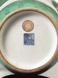 Vaso, Cina sec. XVIII-XIX, a balaustro, in porcellana a smalto verde marmorizzato, reca marchio Qianlong, alt. cm 40, difetto allo smalto