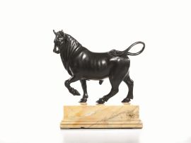 Scultura, sec. XVII, in bronzo modellata, come un toro, da un originale di Antonio Susini cm 21x27, su base in marmo giallo