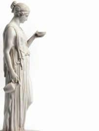 Statuina, manifattura Royal Copenaghen Eneret, sec. XIX, in biscuit, raffigurante una Vestale, alt. cm 36 e gruppo, manifattura Royal Copenaghen Eneret, sec. XIX, in biscuit, raffigurante le Tre Grazie, alt. cm 33, alcuni danni (2)