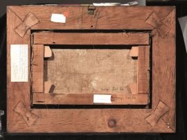 sul retro iscrizione: questo quadro "Bosco sotto la neve è di Achille Tominetti il figlio del pittore lo regalò a Fanni Solari in Del Re, mia madre, Luigi Del Re"