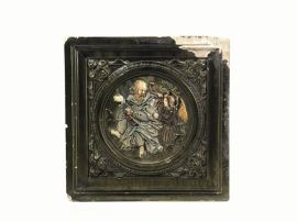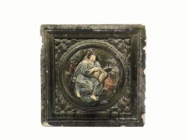 Tre formelle, sec. XIX, di forma quadrata in maiolica dipinta raffiguranti, San Marco, San Giovanni e San Matteo, lievi danni (3)