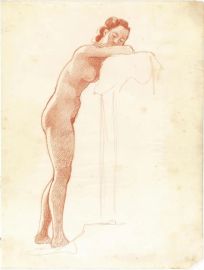 Lotto di 10 disegni. Nove disegni sono a matita di grafite e matita rossa; un disegno a matita nera e acquerello. Tutti su carta avorio liscia. mm 340x260 cad.