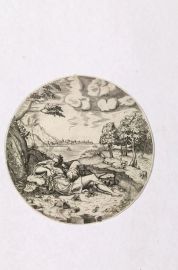 Monogrammato e datato “1570†sulla lastra in basso a sinistra. Foglio di notevole raritàcome tutte le incisioni di Cimerlini.