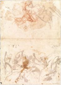 mm 292x405. Firmato al verso “Cav.Calabrese”. Al verso vari altri studi: un’ altra versione per la figura di Susanna, scena di uno scontro e altro studio di figura (a matita rossa).