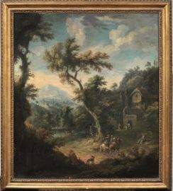 PAESAGGIO CON PASTORE E ARMENTI CHE SI ABBEVERANO IN UN CORSO D’ACQUA