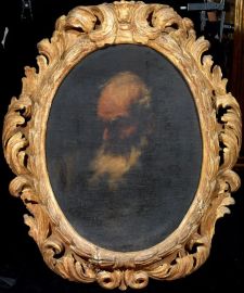 coppia di dipinti olio su tela ovali, cm 65x50 ciascuno