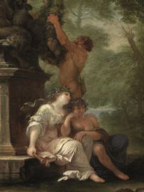 Così Filippo Lauri nella “Nota de diversi quadri fatti da me… i quali sono a mio giudizio i migliori che abbia fatto….” redatta il 19 febbraio 1687 per Filippo Baldinucci e pubblicata dal figlio, Francesco Saverio, in appendice alla circostanziata biografia dell’artista romano (F.S. Baldinucci, Vite di artisti dei secoli XVII-XVIII. A cura di Anna Matteoli, Roma 1975, pp. 167-78). Non sappiamo in realtà se il dipinto eseguito per l’Abate Marucelli, raffinato collezionista e bibliofilo, attento agli episodi più raffinati e curiosi della pittura romana del suo tempo, sia proprio quello che qui si presenta: il successo di questa invenzione, testimoniato da un certo numero di repliche, è documentato dallo stesso Lauri che nella nota citata ricorda anche “un quadro in tela da tre palmi bislungo per un Cavaliere di Sassonia con dentro un Bacanale con Satiri e bacante e fauni con il paese di bon gusto” eseguito nel 1685. Lo farebbero supporre però le iniziali apposte dall’artista sulla base dell’ara che, decorata con un rilievo classico raffigurante una scena sacrificale, allude scherzosamente alla parodia di sacrificio che costituisce il tema del dipinto. Solo eccezionalmente, infatti, Filippo Lauri siglò le sue opere destinate al collezionismo privato, peraltro inconfondibili nella raffinatezza della loro esecuzione. Ricercate dai principali collezionisti italiani e stranieri (molte sono citate ad esempio negli inventari della collezione Colonna) ed estremamente costose (fino a 100 scudi per un quadretto di un palmo e mezzo, e 160 per quelli che fossero arrivati a quattro palmi, poco più di ottanta centimetri) le opere a piccole figure dipinte su tela o, più raramente, su rame raggiunsero un tale successo da suggerire all’artista di abbandonare l’attività di frescante che fino ai primi anni Settanta aveva praticato nei palazzi e nei casini di campagna dei principi romani, dai Borghese ai Farnese, e addirittura nella galleria voluta da Alessandro VII nel palazzo del Quirinale.