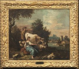 E’ in effetti negli anni del soggiorno inglese di quest’ultimo, fra il 1752 e il 1762, che Giuseppe Zais, privo di un concorrente diretto in patria, raggiunse il successo presso i collezionisti veneziani e lo stesso console Smith. Fu tuttavia negli anni Sessanta, periodo a cui queste tele sono state riferite, che Zais diede le prove più felici della sua attività, schiarendo la sua tavolozza e proponendo quella sua personale forma di Arcadia di cui anche la coppia di tele qui esaminata offre una precisa testimonianza, nella commistione di motivi ideali e realistici.