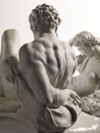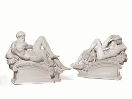 in porcellana bisquit raffiguranti il Crepuscolo, l'Aurora, il Giorno e la Notte, dalle sculture eseguite da Michelangelo per i sepolcri monumentali dedicati a Lorenzo Duca d'Urbino e Giuliano Duca di Nemours nelle Cappelle Medicee in San Lorenzo a Firenze. I modelli di due di queste sculture si trovano nel camino monumentale realizzato da Gaspero Bruschi nel 1754 e oggi conservato presso il Museo della Manifattura di Doccia a Sesto Fiorentino (Firenze), cm 45x55x30 (4)