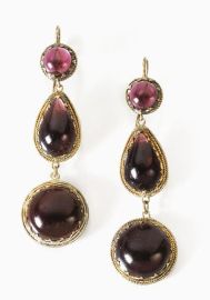DEMI PARURE, SEC. XIX, IN ORO GIALLO E GRANATI COMPOSTA DA COLLANA E PAIO DI ORECCHINI PENDENTI