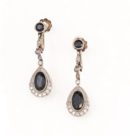DEMI-PARURE IN ORO BIANCO, ZAFFIRI E DIAMANTI COMPOSTA DI COLLANA E PAIO DI ORECCHINI PENDENTI