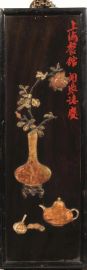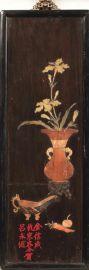 A PAIR OF WOOD SCREEN WITH SOAPSTONES CHINA 19TH CENTURY