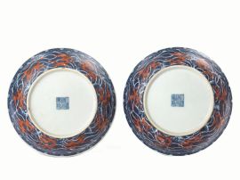 in porcellana decorati al centro con draghi rosso ferro, diam cm 17,5