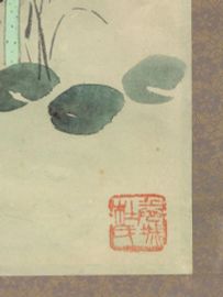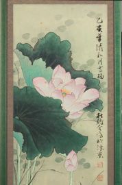 acquerello su carta raffigurante fiori di loto , cm 100x32, firmato