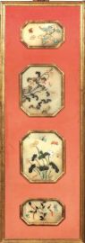 TWO WOOD PANEL CHINA 19TH CENTURY WITH PRECIOUS STONES