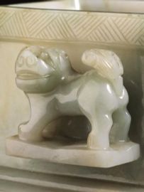in giadeite, decorato con motivo di Taotie a rilievo il collo con prese a rilevo moldellate nella forma di Qilin alt. cm 23,5