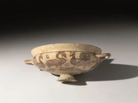 Materia e tecnica: argilla figulina beige, vernice bruna opaca, eseguita a