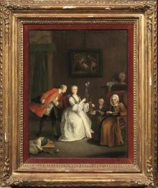 coppia di dipinti ad olio su tavola, cm 45,5x34,5 ciascuno