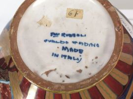 Coppia di brocche, manifattura Rubboli, Gualdo Tadino, inizi sec. XX, di forma globulare, inmaiolica a lustro metallico decorata ad animali fantastici nei toni del blu, oro e rosso, anse a nastro e presa superiore a semicerchio, alt. cm 34, recano il marchio alla base, una lieve sbocconcellatura alla base di una brocca (2)