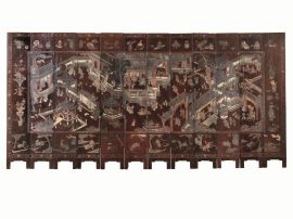 periodo Jiajing (1796-1820) a dodici ante in legno laccato, intagliato e dipinto, cm 550x275 Vedi scheda da catalogo